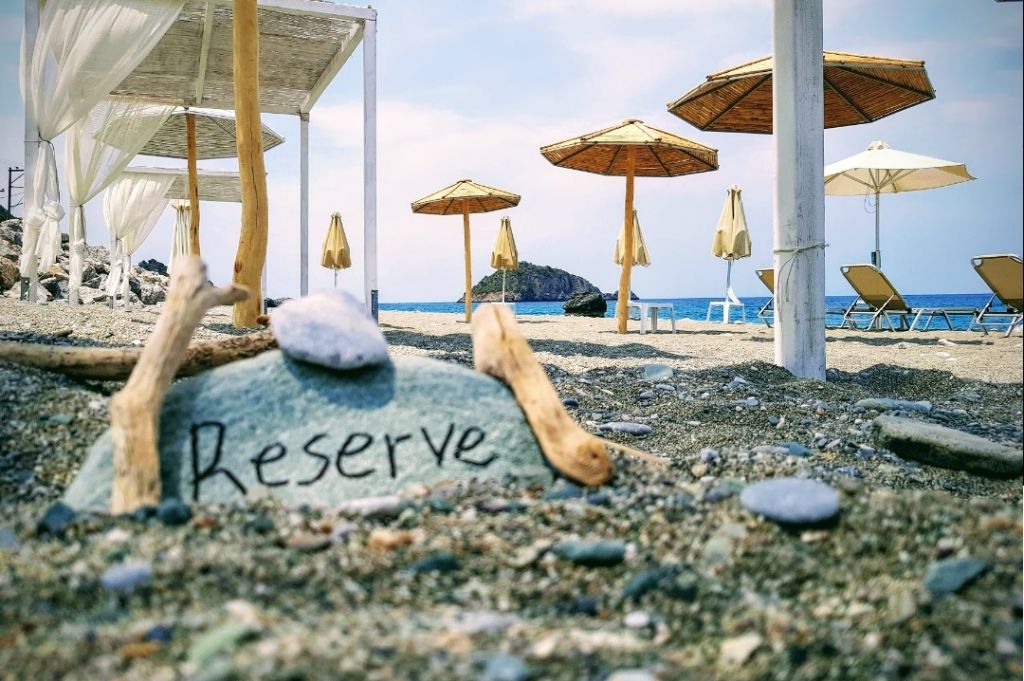 Ακριβώς μπροστά στην παραλία με τα κρυστάλλινα νερά, ένας όμορφος all-day χώρος σας περιμένει. Εκεί θα χαλαρώσετε στις ξαπλώστρες και θα χαρείτε τη θάλασσα, με πολύ καλό καφέ και σνακ.  Στον προσεγμένο χώρο της ταβέρνας θα απολαύσετε καλομαγειρεμένα σπιτικά πιάτα, special μακαρονάδα του ψαρά, ολόφρεσκα ψάρια και καλαμάρια κατευθείαν από το βαρκάκι του Κου Ηρακλή, ενώ συγχρόνως θα ατενίζετε το δροσερό Αιγαίο.
